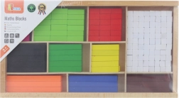 De set bevat 308 houten staafjes in 10 standaardlengtes en -kleuren, opgeborgen in een stevige doos met vakjes. Ideaal voor thuis en in de klas, voor individueel gebruik en groepsactiviteiten.