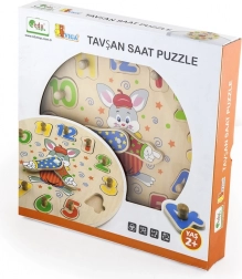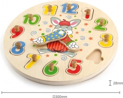 Deze houten klok combineert een inlegpuzzel met het leren klokkijken. De gekleurde, genummerde stukjes met praktische knopjes liggen prettig in kleine kinderhanden en helpen bij het herkennen van de cijfers 1–12. Tijdens het puzzelen trainen kinderen hun geduld, oog-handcoördinatie en het waarnemen van vormen en kleuren.