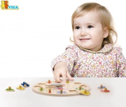Elk stukje heeft een houten knopje voor comfortabel vastpakken. Bij het leggen oefenen kinderen hun fijne motoriek en oog-handcoördinatie.