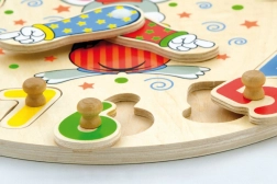 De duurzame houten plaat met gladde randen is ideaal voor dagelijks spelen, thuis en op de kleuterschool. Dankzij de grote diameter van ca. 30 cm zijn de cijfers goed leesbaar en is het werken met de stukjes comfortabel.