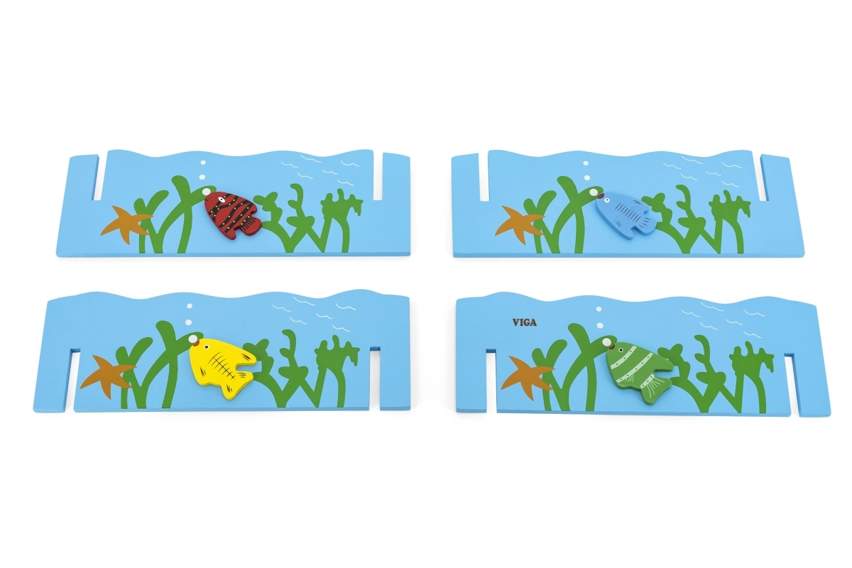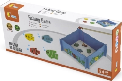 De set bevat een vijver van ca. 35 × 13 × 5 cm, vier magnetische hengels voor samen spelen en 20 visjes met cijfers, die vroege rekenvaardigheid en sorteren ondersteunen. Dankzij de magnetische uiteinden is het vangen van de visjes intuïtief en leuk.