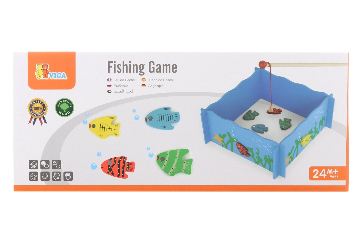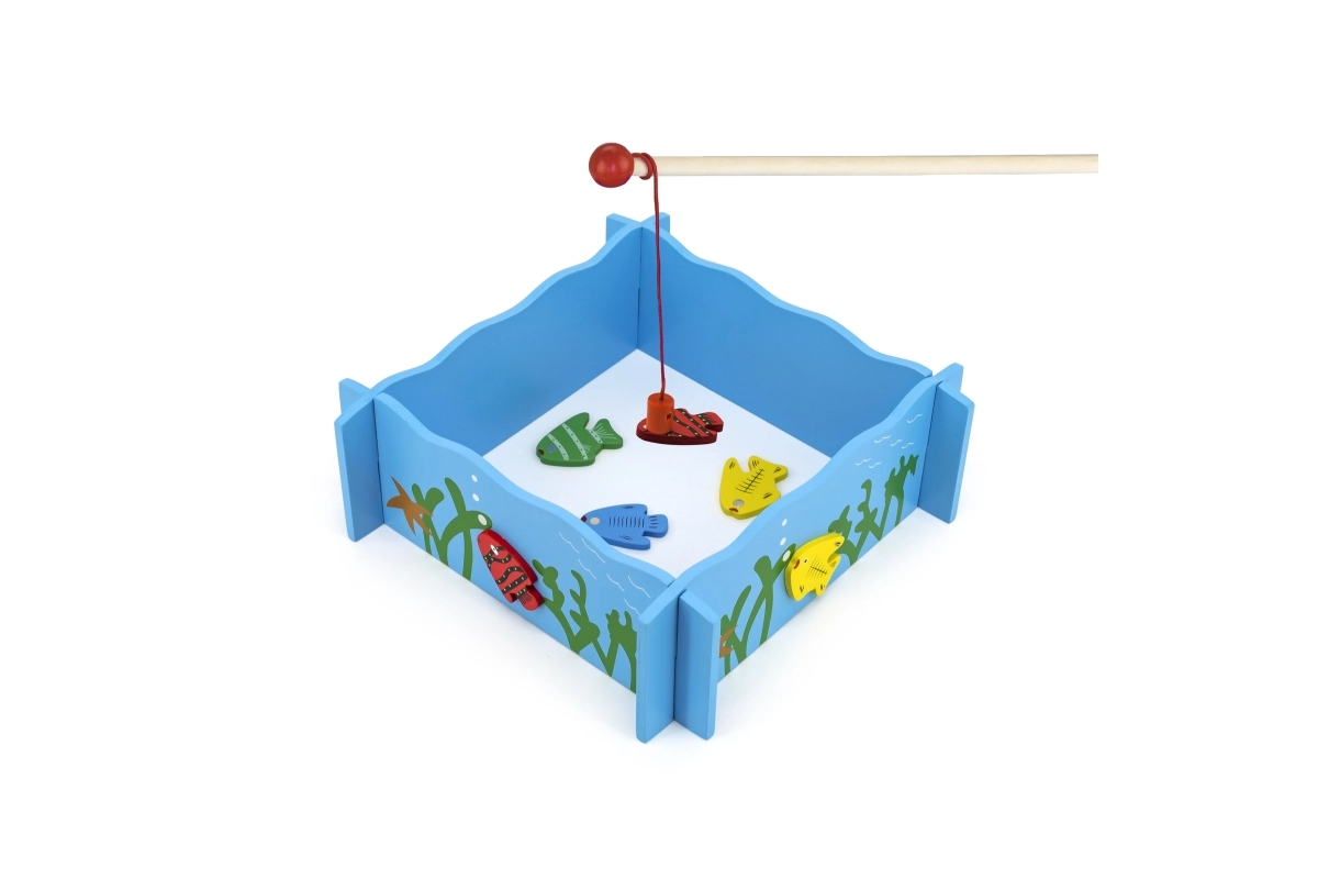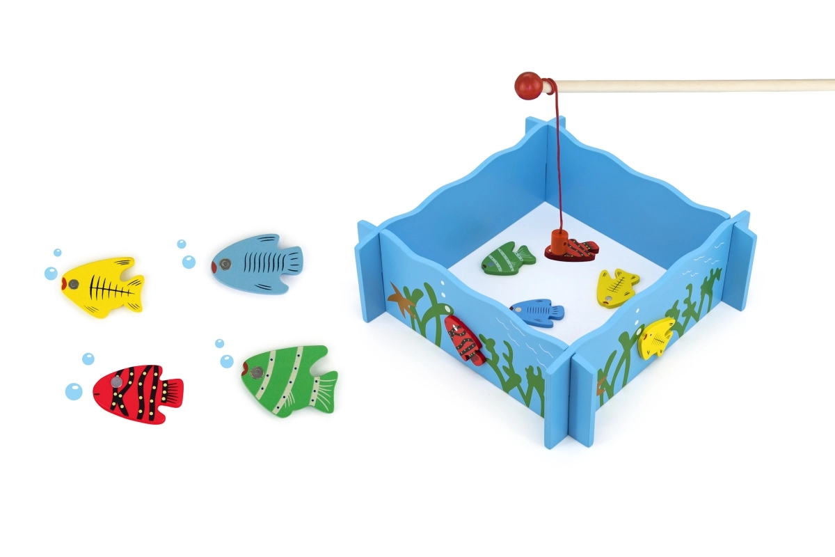 Het leuke en kwalitatieve houten magnetische visspel stimuleert de fijne motoriek, oog-handcoördinatie en geduld bij kinderen vanaf 24 maanden. Bevat een visvijver, 4 magnetische hengels en 20 kleurrijke visjes met cijfers om te leren en te spelen.