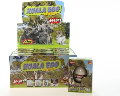 Op zoek naar een eenvoudige en leuke activiteit? Leg het ei in een bak met water en kijk hoe de schaal na enkele uren barst en na twee dagen een kleine koala uitkomt. Ideaal als kleinigheidje, beloning of party-item.