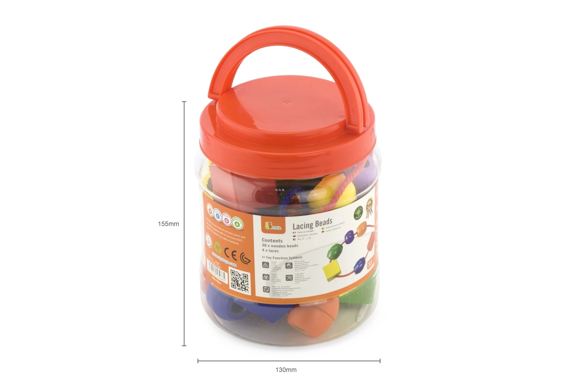 Deze set extra grote houten kralen is het ideale speelgoed voor de vroege ontwikkeling van kinderen. Met opvallende kleuren en verschillende vormen oefenen kinderen het sorteren, tellen en hun creativiteit, terwijl ze tegelijkertijd hun greep en concentratie versterken. Het formaat van de kralen is afgestemd op kinderhanden, waardoor rijgen eenvoudig en leuk is.