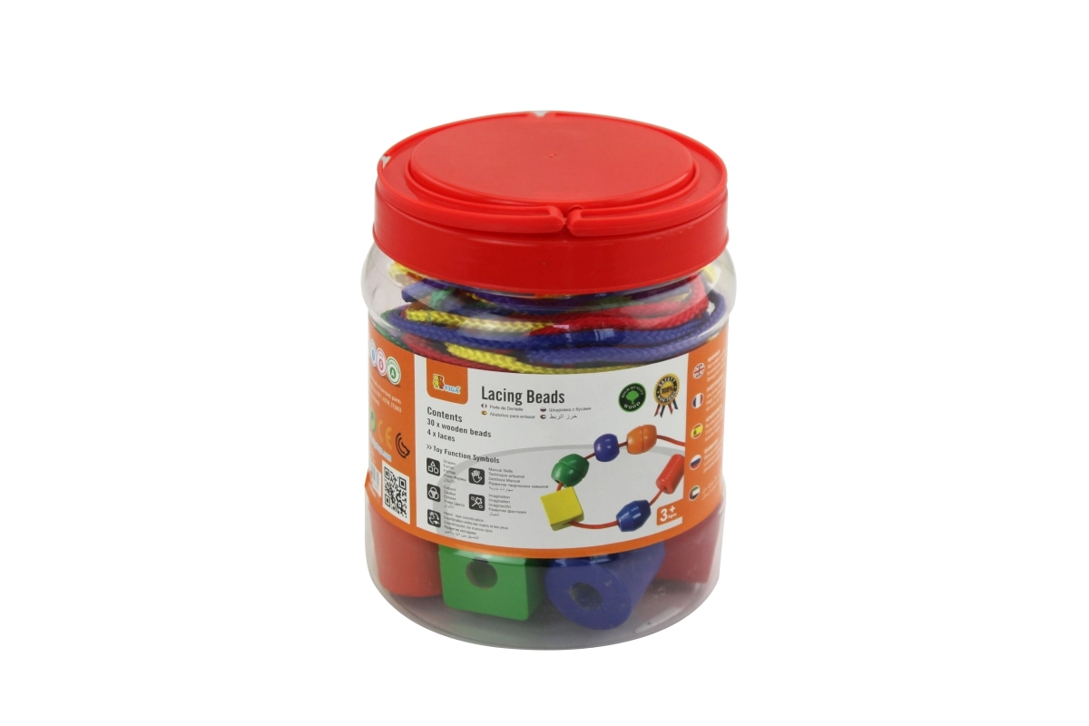 Rijgen bevordert een correcte greep, oog-handcoördinatie en concentratie. Ideaal voor kleuters en vroeg leren.