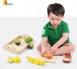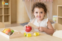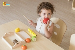 Dankzij klittenband kan het fruit met één beweging gesneden en weer bevestigd worden, wat de ontwikkeling van fijne motoriek bevordert.