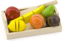 Het fruit en het mes zijn gemaakt van natuurlijk hout, wat veiligheid en duurzaamheid tijdens het spel garandeert.
