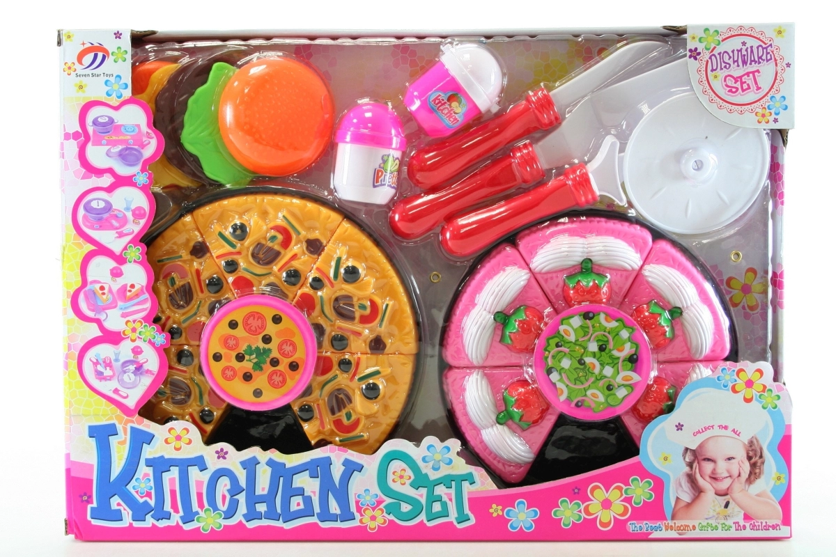 Deze kleurrijke plastic servies- en etenset biedt kinderen uren creatieve pret. Dankzij de in stukken verdeelde cake en taart oefenen kinderen het snijden, serveren en tafelen. Ook inbegrepen zijn een hamburger, zoutvaatje en pepervaatje en praktisch gerei, wat de fijne motoriek en verbeelding stimuleert.