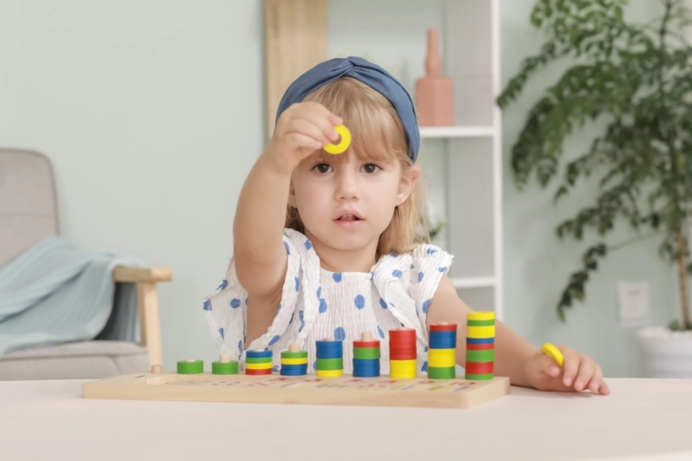 Met gekleurde ringen en genummerde tegels kunnen kinderen hun wiskundige vaardigheden en numeriek denken ontwikkelen.