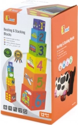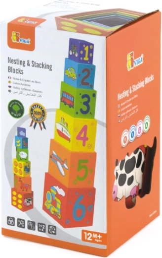 Ontworpen voor kinderen vanaf 12 maanden. De afmetingen van het grootste blok zijn 11 x 11 cm, wat ideaal is voor kleine handjes.