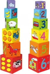 Elk blok is kleurrijk gemarkeerd en versierd met afbeeldingen - dieren, cijfers, fruit en vervoer. Deze veelzijdigheid biedt veel ontdekkings- en leermogelijkheden.