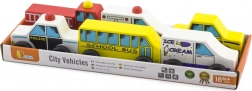 De set biedt verschillende soorten voertuigen die kinderen helpen creativiteit te ontwikkelen en stadsdiensten te begrijpen.