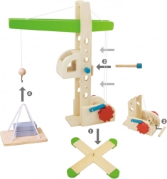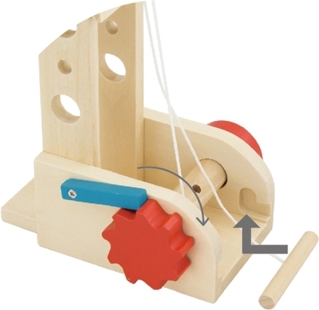 Met eenvoudig draaien aan het opwindwiel kunnen kinderen de lading omhoog hijsen en neer laten. Het mechanisme bevordert de oog-handcoördinatie en biedt een soepele, veilige werking.