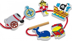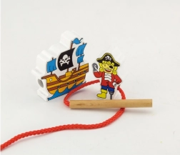 Ontdek de magie van een piratenavontuur met een kwalitatieve houten rijgset. Gekleurde blokken met motieven zoals piraat, schip of anker motiveren kinderen tot creëren en helpen spelenderwijs de greep, concentratie en het geduld te trainen. Door het rijgen aan de veter oefenen kinderen nauwkeurigheid en coördinatie, terwijl ze zich uitstekend vermaken.