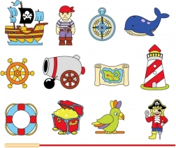 Figuren van een piraat, schip, schat of roer prikkelen de fantasie en maken van leren een aantrekkelijk avontuur.