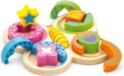 Het leggen van grotere, gemakkelijk vast te pakken stukjes ontwikkelt al op jonge leeftijd de precisie van bewegingen en de oog-handcoördinatie.