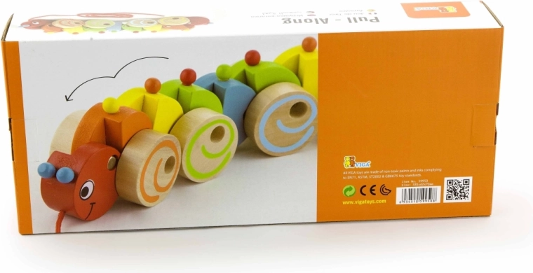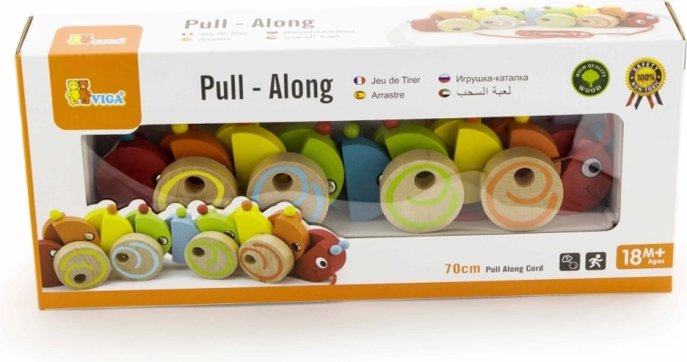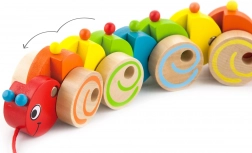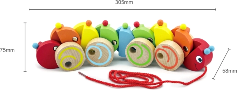 Deze vrolijke houten rups is het ideale speelgoed voor peuters. De bonte segmenten bewegen en roteren tijdens het rijden, wat kinderen motiveert om te lopen en actief te spelen. De stevige constructie en gladde randen zorgen voor veilig gebruik in kinderhandjes.