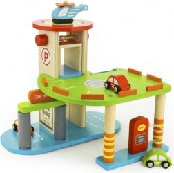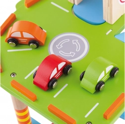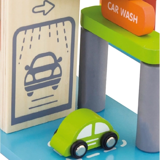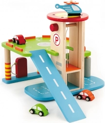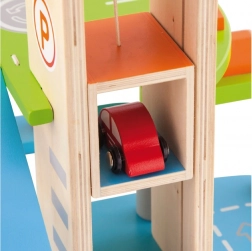 Deze kwaliteitsvolle houten garage biedt meerdere parkeerlagen, een landingsplatform voor de helikopter en een praktische lift om autootjes gemakkelijk tussen verdiepingen te verplaatsen. Dankzij het doordachte ontwerp met banen, borden en accessoires oefenen kinderen hun coördinatie en ontwikkelen ze hun verbeelding.