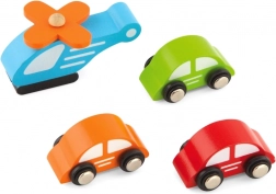 In de verpakking zitten 3 houten autootjes en een helikopter, zodat je meteen na het uitpakken kunt spelen. Veilige afgeronde vormen en duurzame materialen zijn ideaal voor dagelijks gebruik.
