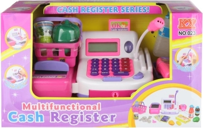 De kassa is uitgerust met een transportband, scanner en een lade voor muntjes. Kinderen oefenen zo basisrekenen, communicatie en sociale vaardigheden. Voeding via 2× AA-batterijen (niet inbegrepen).