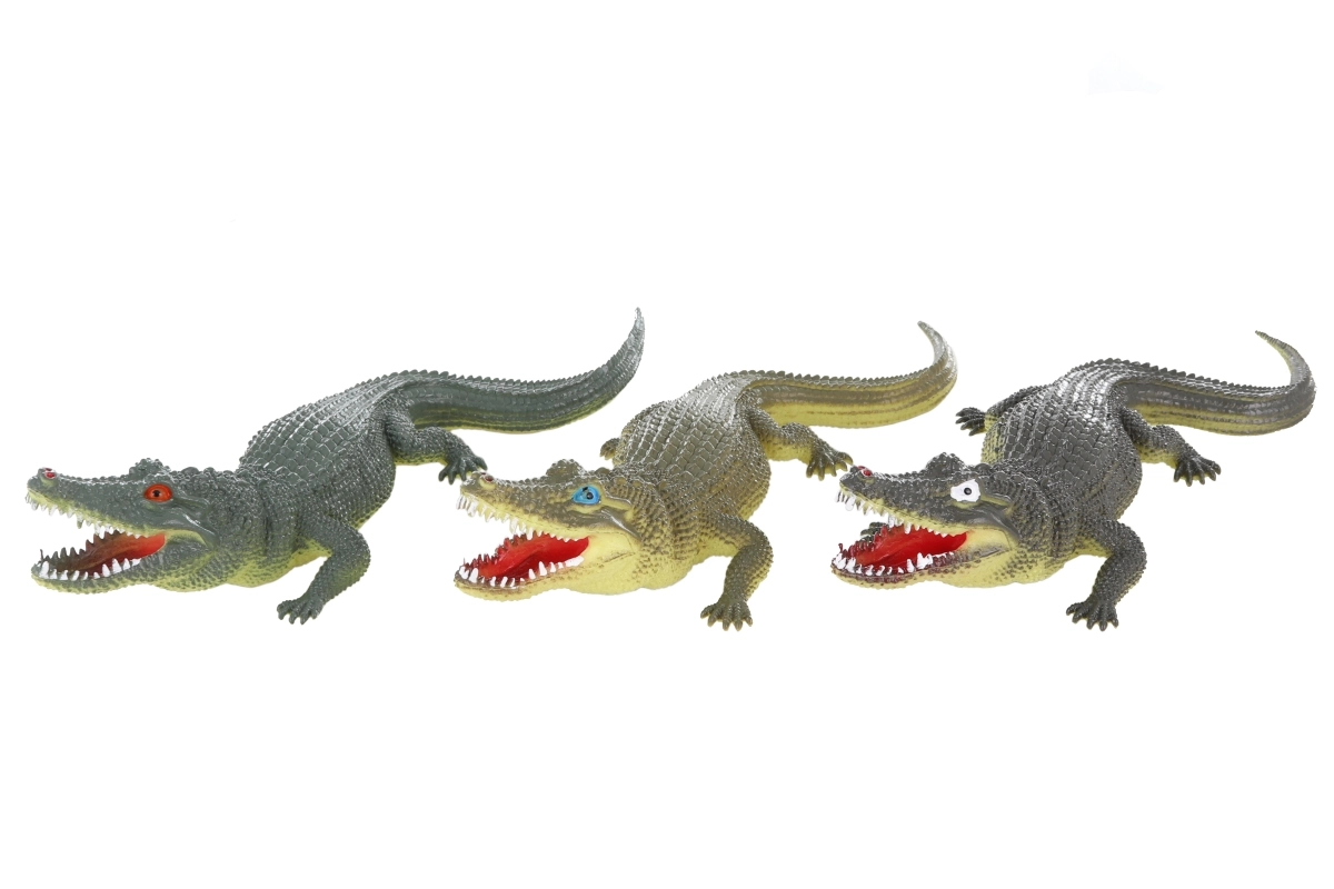 Rubberen krokodil van ca. 36–41 cm (afhankelijk van het type). Leeftijd 3+