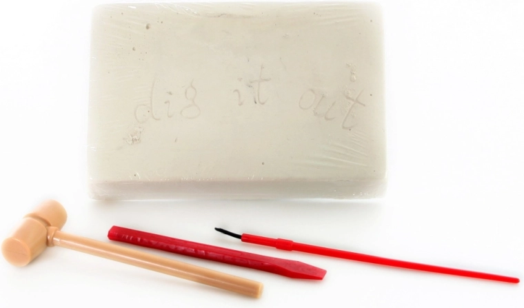 De set is ontworpen voor veilig en schoon werken binnenshuis. Leg een onderlegger klaar, voeg een beetje water toe en ga aan de slag met speelse archeologie. Ideaal als cadeau voor jonge wetenschappers en liefhebbers van natuurwetenschappen.