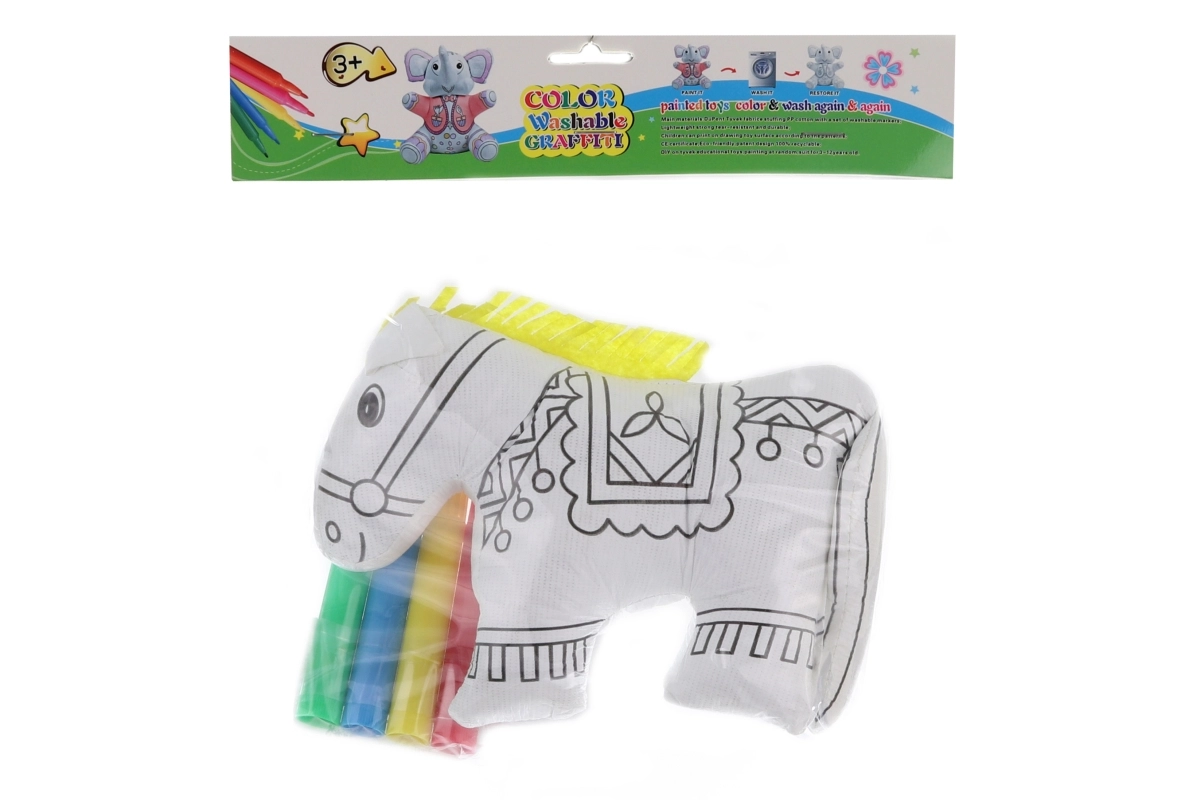 Het wasbare diertje in de vorm van een paard is een geweldige keuze voor kleine kunstenaars. Dankzij het speciale polyester materiaal kan het paardje eenvoudig worden gewassen en opnieuw worden ingekleurd, zodat het creatieve plezier nooit ophoudt. De set bevat alles wat kinderen nodig hebben om meteen te beginnen.