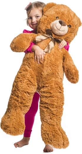 De beer heeft een totale lengte van ongeveer 90 cm (ca. 90 × 40 × 20 cm) en meet in zittende houding ongeveer 55 cm. Dankzij de hoogwaardige afwerking behoudt hij zijn vorm en wordt hij een favoriete vriend voor dagelijks spel en ontspanning.