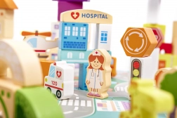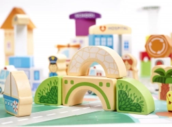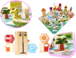 Breng de creativiteit van je kind tot leven met deze bijzonder kleurrijke houten bouwset bestaande uit 120 stukjes, ideaal voor het creëren van een stedelijke omgeving. De volledige set omvat gebouwen zoals een ziekenhuis, fabriek, hotel, tankstation en brandweerkazerne, waardoor kinderen hun verbeelding kunnen ontdekken en ontwikkelen.