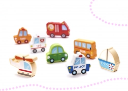 Stimuleert de ontwikkeling van fijne motoriek, logisch denken en kleurexploratie. Met inbegrepen dieren zoals olifant, giraffe, zebra, leeuw en krokodil, breidt het plezier zich ook uit naar een zoö-element. De verscheidenheid aan vervoermiddelen zoals politie, brandweer, ambulance, taxi, bus, personenauto, fiets en boot zorgt ervoor dat je kind zich nooit verveelt.