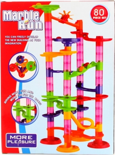 Deze kunststof knikkerbaan met in totaal 80 onderdelen biedt uren creativiteit en plezier voor kinderen vanaf 3 jaar. Bevat een waterrad, diverse glijbanen en andere elementen die logisch denken, motoriek en creativiteit stimuleren.