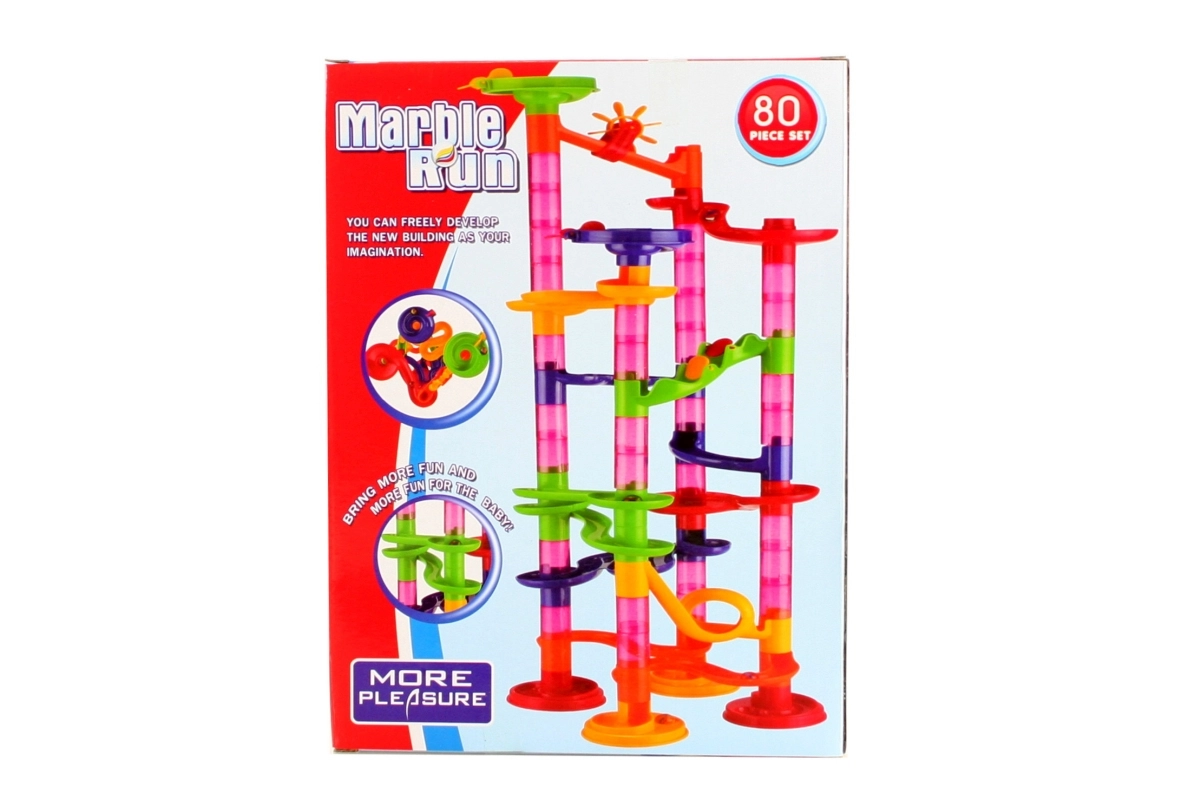 Bouw je eigen wereld vol snelle afdalingen en verrassende bochten. De knikkerbaan met 80 onderdelen laat kinderen onderdelen combineren en gevarieerde routes creëren, waarbij elke lancering van de knikker weer nieuw plezier brengt. Dankzij elementen zoals het waterrad en de glijbanen blijft het spel altijd boeiend en prikkelt het de verbeelding.