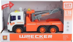 Deze batterij-aangedreven sleepwagen is een favoriet speeltje voor kinderen die van auto's en actieve spelletjes houden.
