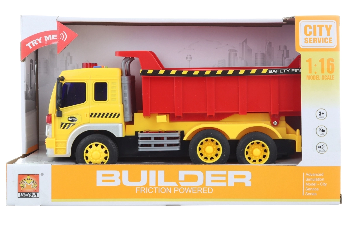 Deze speelgoed-kiepwagen biedt veel plezier dankzij licht- en geluidseffecten die worden geactiveerd met de knoppen. Dankzij het formaat van ca. 27 × 12 cm ligt hij prettig in de hand en is hij perfect om mee te spelen op het tapijt en in de kinderkamer. De batterijen zijn inbegrepen, dus je kunt meteen “naar de bouwplaats”.