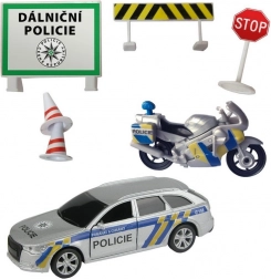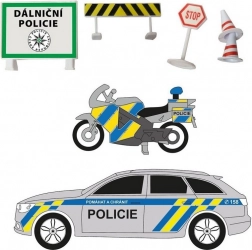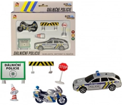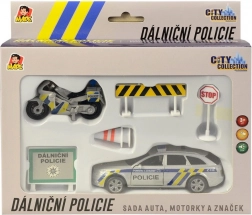 Deze set brengt een authentieke ervaring van het werk van de snelwegpolitie, zoals je die van onze wegen kent. De metalen politieauto met licht- en geluidseffecten en de plastic motor samen met de verkeersborden ondersteunen creatief spel en fantasie. Dankzij de pull-back functie schieten de voertuigen snel weg en kan het plezier beginnen.
