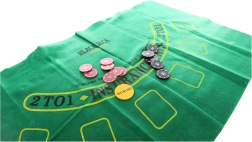 - Speelkaarten, fiches, speelmat, handleiding