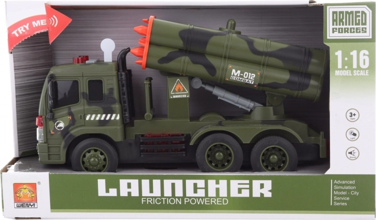 Met dit militaire voertuig met raketten beleven je kinderen urenlang speelplezier. Na het indrukken van de knoppen maakt de auto geluid en brandt het licht, wat de realistische speelervaring vergroot. Met afmetingen van ca. 25 x 14 cm is het groot genoeg voor kleine helden. Batterijen zijn inbegrepen in de verpakking, zodat de pret meteen na het uitpakken kan beginnen.
