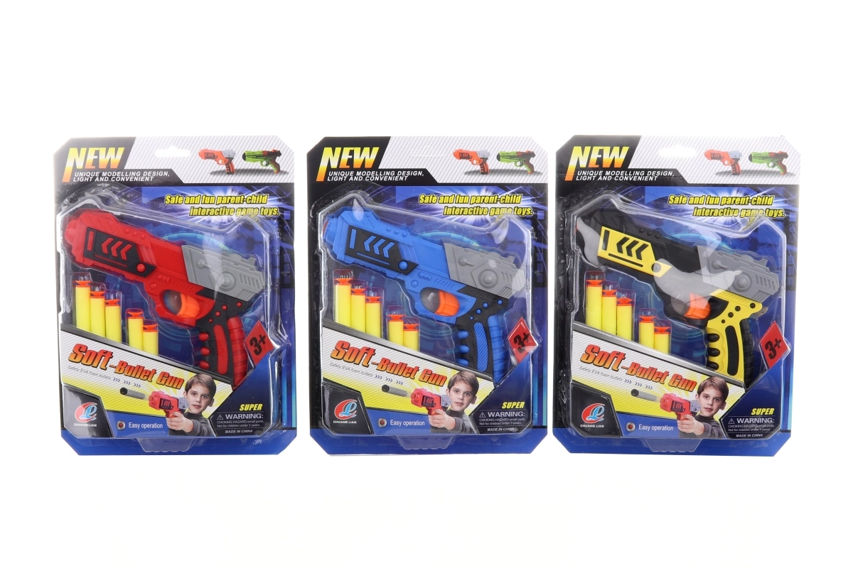 Een leuk plastic pistool met schuimkogels biedt veilige, actievolle pret voor kinderen vanaf 3 jaar. De set bevat 5 zachte kogels met zuignappen voor nauwkeurig schieten op gladde oppervlakken. Dankzij het compacte formaat is het speelgoed eenvoudig te hanteren en ideaal voor spelen binnen en buiten. Veilige schuimschoten, eenvoudige bediening en plezier voor jonge schutters.
