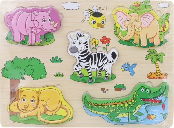 Ontdek de leuke houten inlegpuzzel met safari-motieven, die de fijne motoriek, het herkennen van vormen en dieren ontwikkelt en logisch denken stimuleert bij kinderen vanaf 3 jaar. De hoogwaardige houten uitvoering en kleurrijke illustraties nodigen uit om keer op keer te spelen.