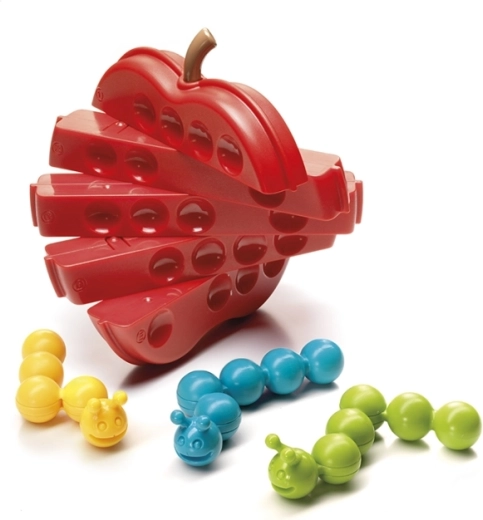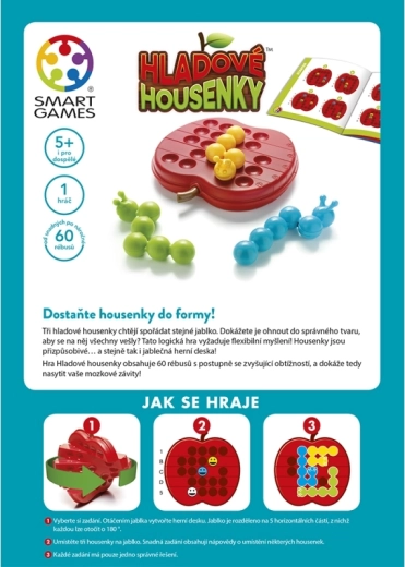 Het spel SmartGames Hongerige rupsjes test je verbeeldingskracht en geduld. Jouw taak is de delen van de appel te draaien en drie rupsjes te buigen zodat ze allemaal precies volgens de opdracht op het bord passen. Elke puzzel heeft slechts één juiste oplossing, dus je kunt rekenen op een eerlijke uitdaging.