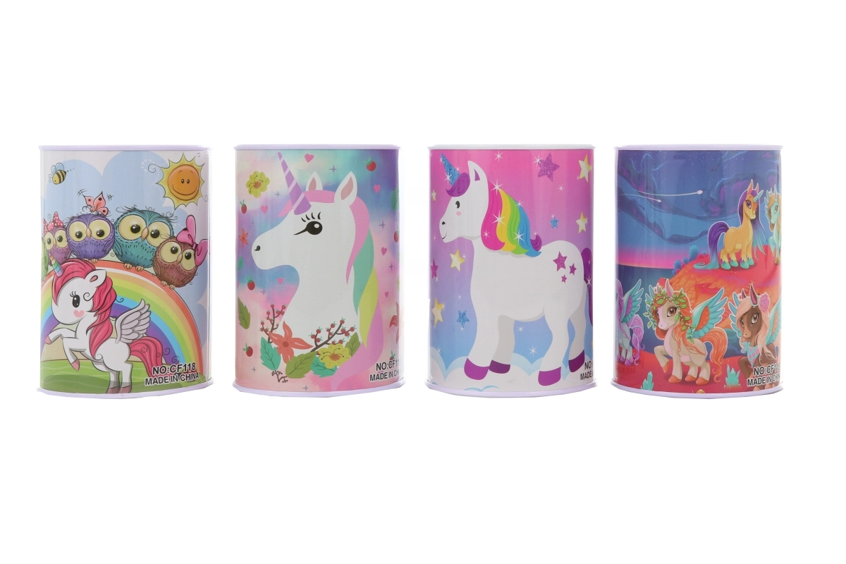 Deze blikken spaarpot met een betoverend eenhoornmotief is een geweldige hulp bij het opbouwen van financiële gewoonten bij kinderen. De robuuste metalen uitvoering is bestand tegen dagelijks gebruik en dankzij het compacte formaat past hij op een plank of bureau.