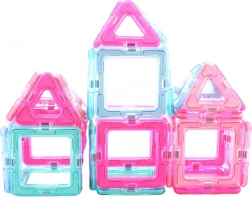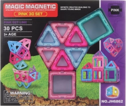 Geniet van uren creatieve pret met deze magnetische bouwset. De set bevat 30 onderdelen die eenvoudig aan elkaar klikken dankzij magnetische randen. De kleurrijke onderdelen in roze, blauw en turquoise zijn transparant en zien er indrukwekkend uit bij het bouwen van verschillende 3D-objecten.