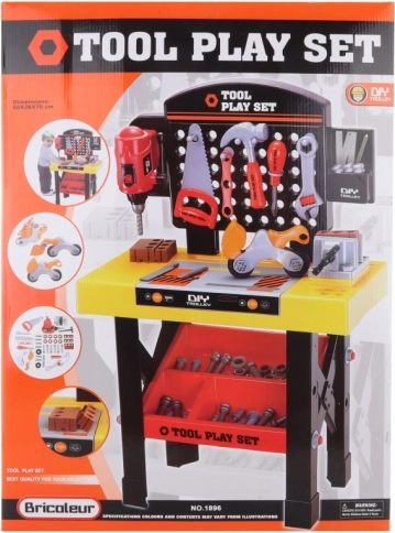 Deze kinderwerkbank met een hoogte van circa 75 cm zal alle kleine klussers blij maken. De robuuste kunststof constructie en de brede set gereedschappen creëren een authentieke werkhoek die de fantasie en vaardigheden van kinderen stimuleert.