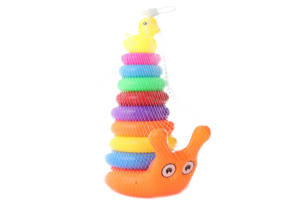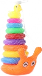 De schattige slakstapel met ringen tovert een glimlach op elk peutergezicht. Door de ringen stap voor stap te rijgen oefenen kinderen geduld, logisch denken en handigheid. Het laatste onderdeel is een plastic eendje dat het spel een leuk en motiverend doel geeft.