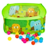 Speelhek met bodem en 50 balletjes – niet voor water. Afmetingen ca. 75 cm x 75 cm x 30 cm. Inbegrepen in de verpakking: 50 balletjes. Het ballenbad kan thuis in de kinderkamer worden gebruikt, maar ook ’s zomers buiten in de tuin. Kinderen beleven veel plezier tijdens het spelen. Leeftijd 6 mnd+