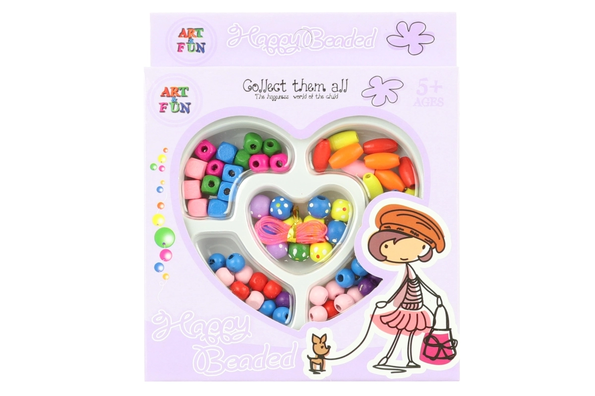 Creatieve set houten kralen voor kleine makers. Bevat verschillende vormen en kleuren voor eenvoudig rijgen en het maken van originele sieraden. Ideaal voor de ontwikkeling van fijne motoriek, creativiteit en kleurenherkenning. Geschikt voor kinderen vanaf 3 jaar.