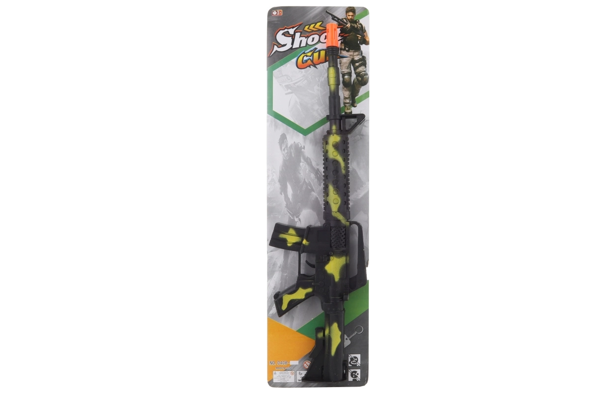 De camouflage plastic speelgoedmitrailleur is ideaal voor actievolle spelletjes binnen en buiten. Dankzij het mechanische geluidseffect zijn er geen batterijen nodig, zodat kinderen altijd en overal kunnen spelen. De lichte constructie en compacte afmetingen maken vasthouden en langer spelen gemakkelijk.
