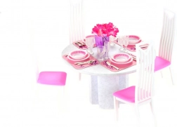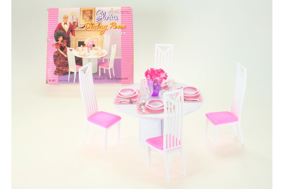 Dek een perfect ingerichte tafel voor de poppen. De Glorie dinerset biedt alles wat kinderen nodig hebben voor een familiediner of een feestelijke maaltijd – van tafelen tot comfortabel zitten. De hoogwaardige kunststof afwerking zorgt voor eenvoudig onderhoud en een lange levensduur.