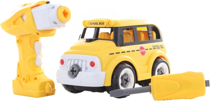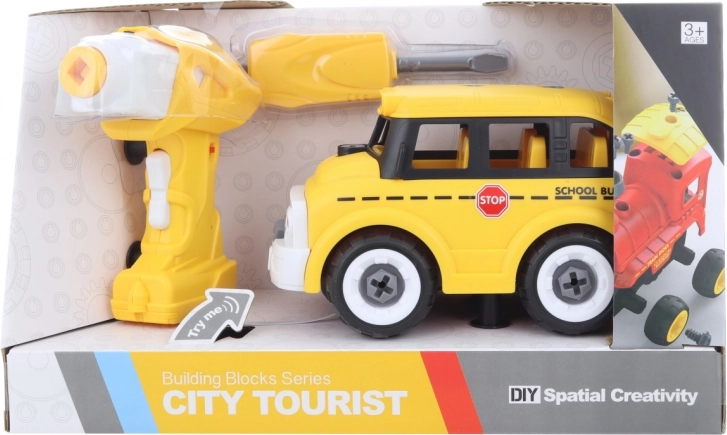 Ontdek een slimme speelgoedset die bouwen en afstandsbediening combineert. Kinderen schroeven de bus eerst in elkaar met de meegeleverde schroevendraaier of boormachine. Uit de boormachine kan de motor worden gehaald, in de bus geplaatst en meteen is hij klaar om te rijden – bedienen is eenvoudig vooruit en achteruit.