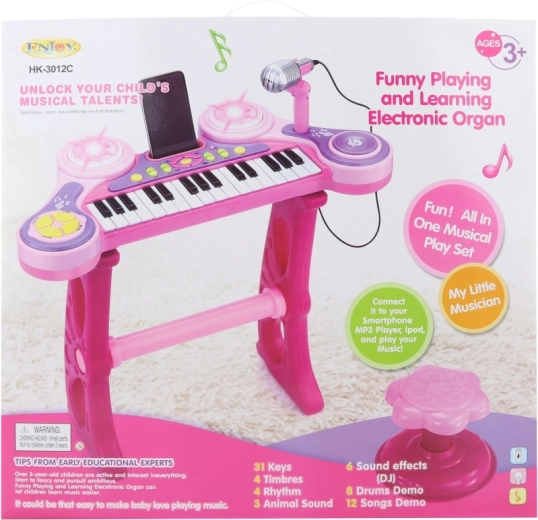 Dankzij de ingebouwde functies kunnen kinderen verschillende begeleidingsmelodieën kiezen, instrumenten wisselen en zingen in de microfoon. Aansluiten van een MP3‑speler maakt het mogelijk om favoriete nummers af te spelen, waarmee kinderen kunnen meespelen en meezingen.
